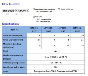 Ống dây khí nén Soft tube JST Linh hoạt hơn ống polyurethane tiêu chuẩn, phù hợp với môi trường làm việc lạnh và yêu cầu độ linh hoạt cao.